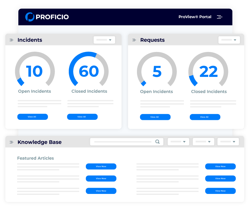 Meet the expectations of B2B partners, company boards, and underwriting criteria for cyber insurance coverage with confidence. The ProView® Security Dashboard empowers you to showcase your ability to manage and mitigate security incidents.